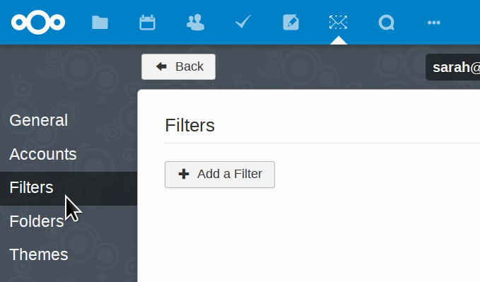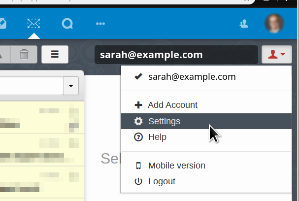 (https://cloud.inclusioproject.com/apps/rainloop/), and select Settings from the User menu (drop-down in upper right).
