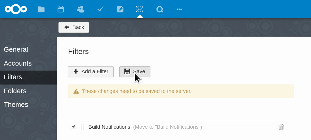 NOTE: Your new filter(s) aren’t saved to the email server yet!