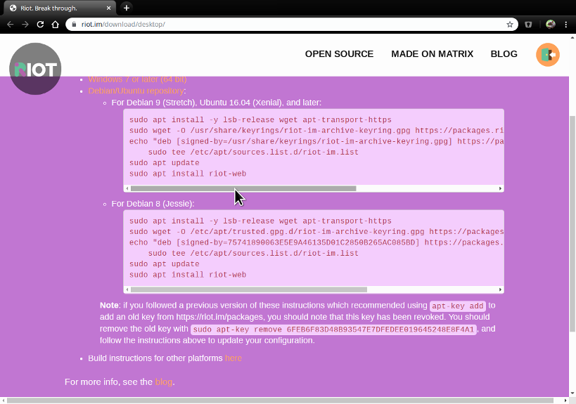 Go to the Element Desktop Download page, and follow the installation instructions for your Linux distribution and version.