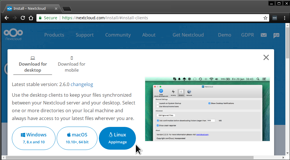 Go to the Nextcloud Desktop Download page, and download the Linux sync client.