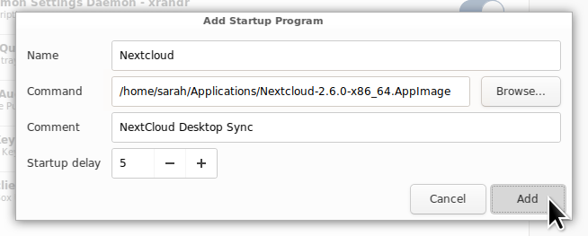 | Command | /home/<your-username>/Applications/Nextcloud-<version>.AppImage |