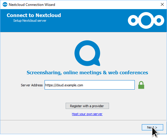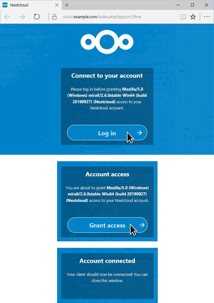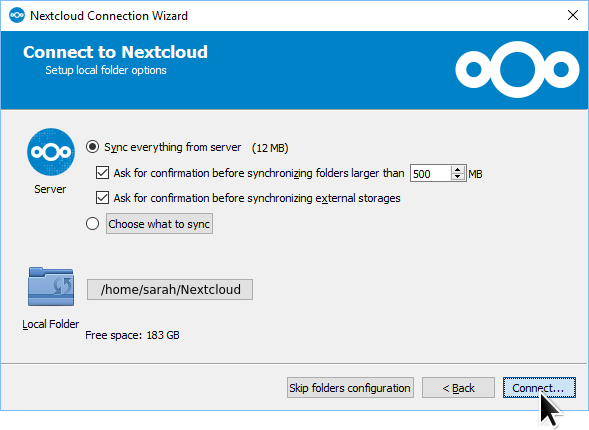 A web browser will pop up, and you’ll be asked to log in to your Cloud server account, and grant access to the sync app.