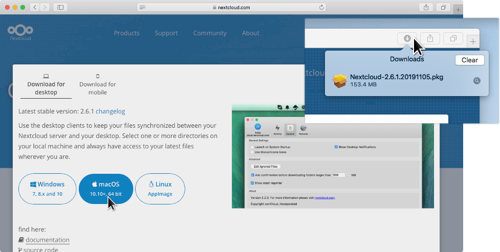 Go to the Nextcloud Desktop Download page, and download the macOS sync client.