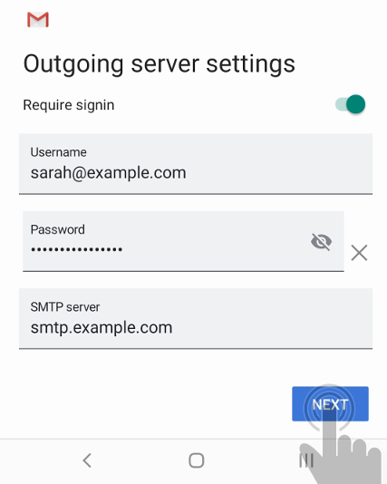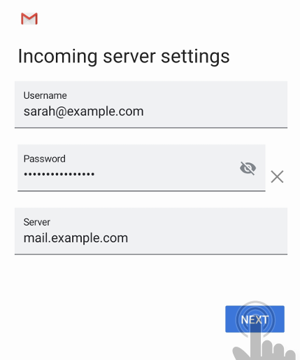 | Account name | A label for this account, e.g. Work email acct, your email address, etc. |