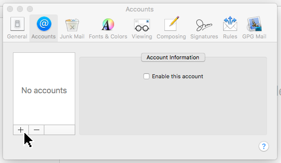 Select the Accounts tab, and click the + at the bottom of the list of accounts.